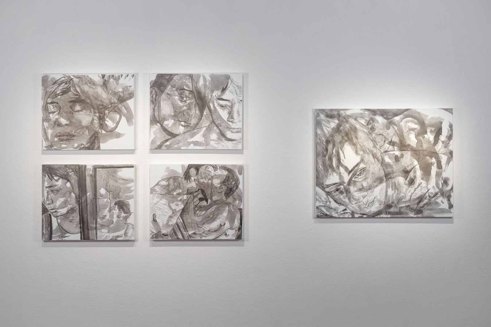在我新近創作的水墨畫系列中,專注於探索兩位角色之間的感情關係,並將它轉化,把一層抽像及混亂的潑墨和一層理性的劇照描繪藝術性地重疊起來。