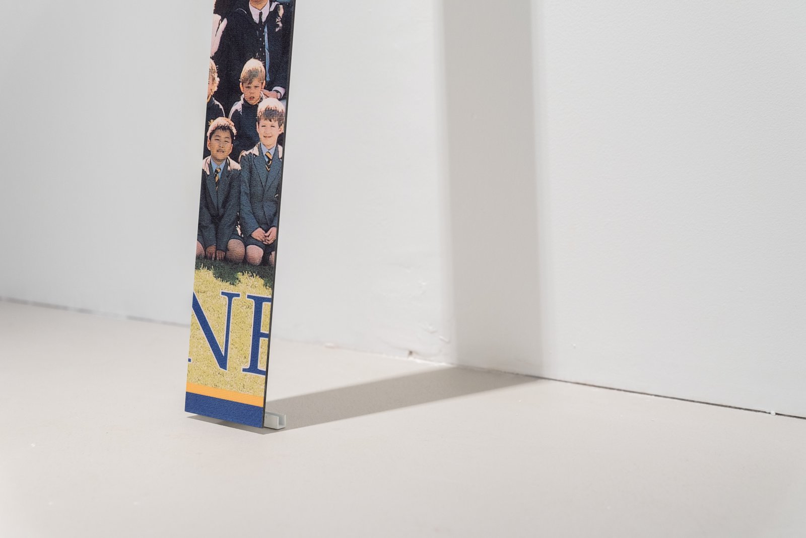 Starting with a decennial school photo, Simo Tse revisited his own boyhood experience of being a boarding school pupil at a unisex institution. Ritualistic and hormonal, the rite of passage for the artist is framed within the legacy of colonial subjects, and the narrative of man-versus-wild masculinity. By reframing the photo, the artist produced a ‘reverse’ gaze back upon himself, a vantage point which peeps through the facade of uniformity. At first glance, the singular idea of masculinity is hyper-performative but unattainable while being held at close proximity.